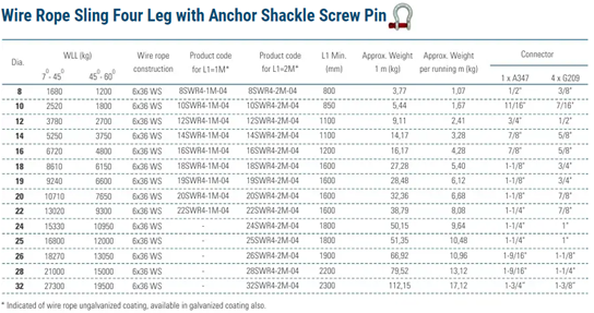 Wire Rope Sling Four Leg (Anchor Sackle Screw Pin)
