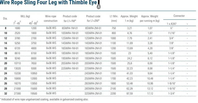 Wire Rope Sling Four Leg (Thimble Eye)